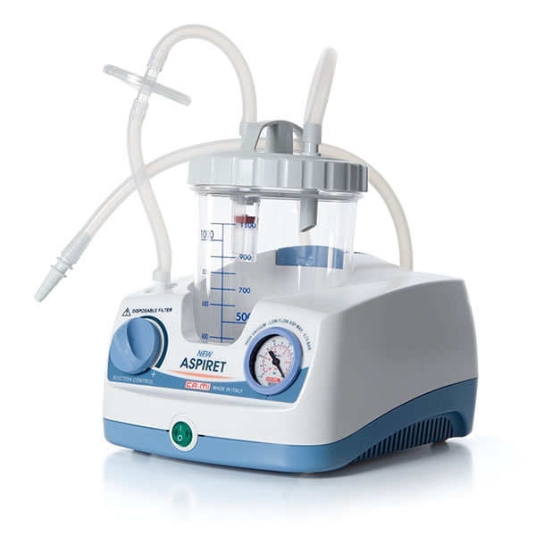 Aspirador eléctrico adecuado para la aspiración de fluidos corporales, aspiración oral, nasal y traqueal en adultos y niños. Adecuado para su aplicación en cirugía pequeña en pacientes traqueotomizados y tratamientos caseros postoperatorios.